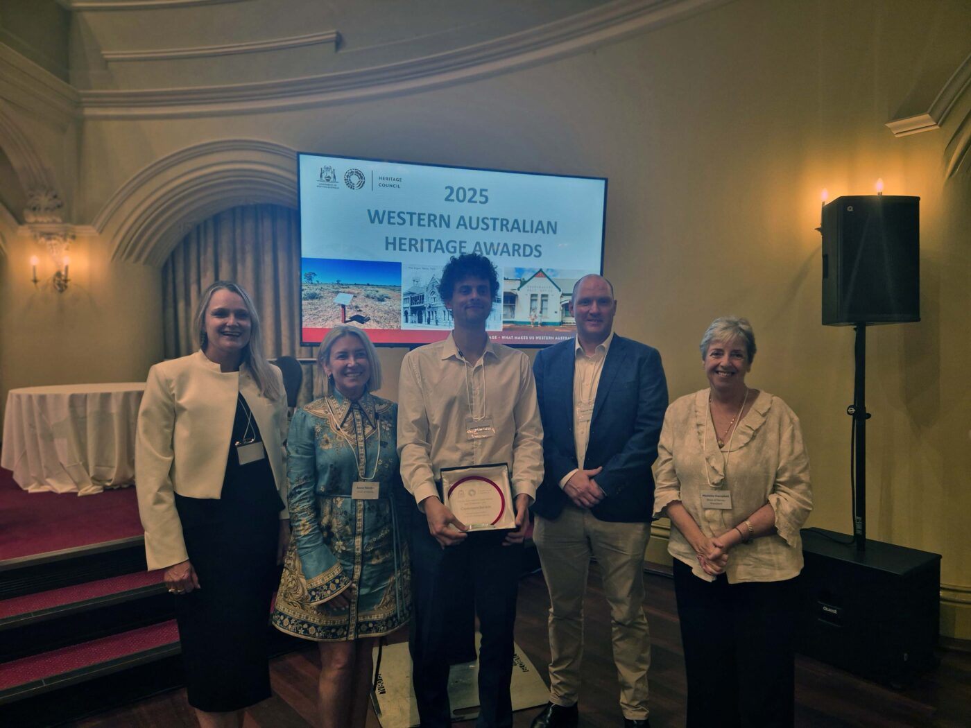 Shire of Harvey staff, CEO Annie Riordan and Shire President Michelle Campbell accepting commendation at the 2025 WA Heritage Awards.