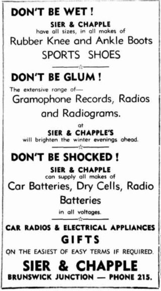 During his years in Brunswick, Charlie became a well-known and respected member of the community. With business partner Alan Sier, he operated a hardware store opposite this site under the name Sier and Chapple. He also served as a Justice of the Peace, a Shire Councillor, and was a life member of both the Agricultural Society and the Bowling Club.