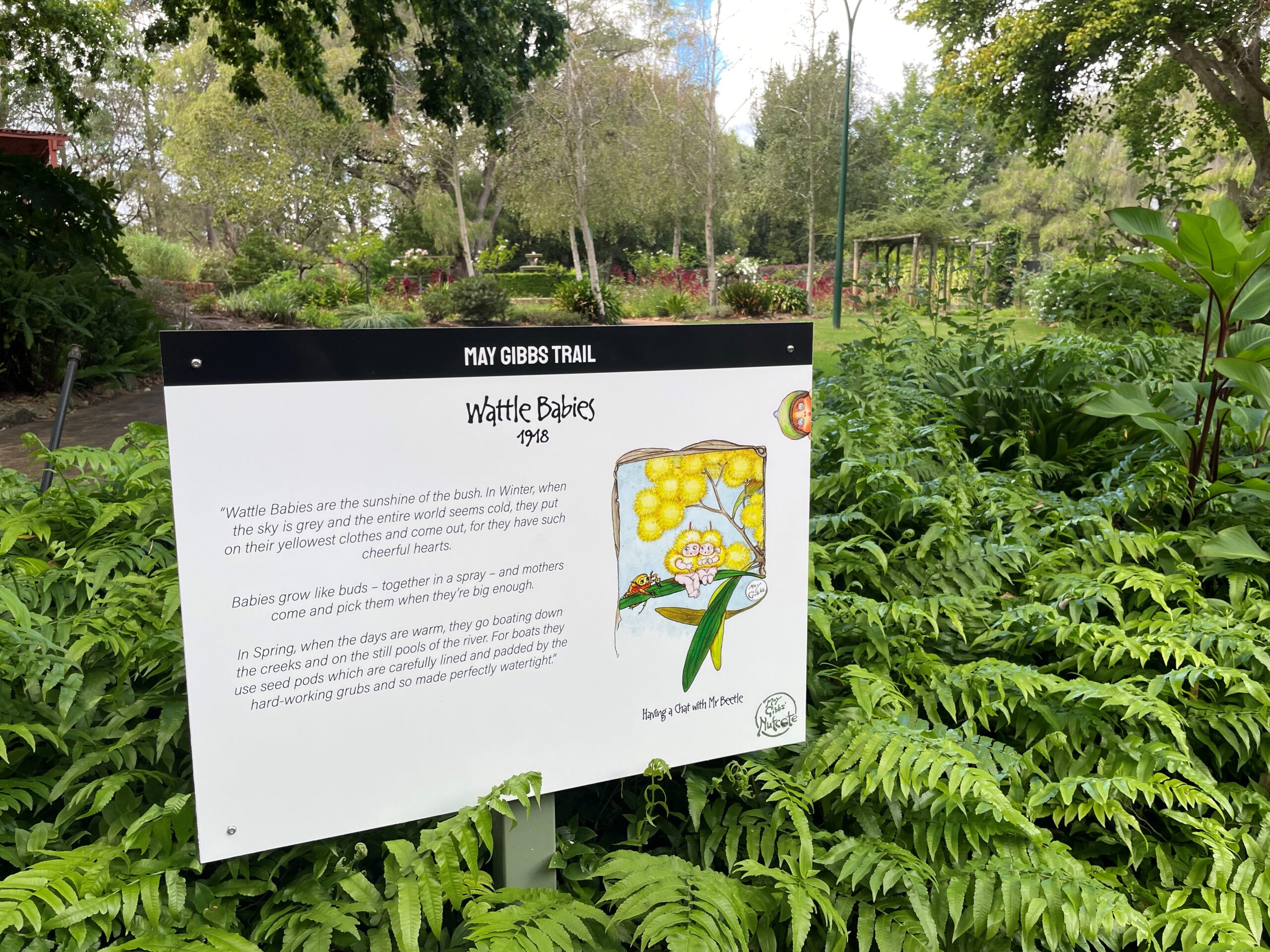 Within the gardens is Stirling Cottage — a replica of the 1850s cottage that was home to Governor Sir James Stirling and the creator of Snugglepot and Cuddlepie, the legendary Australian author May Gibbs. The cottage now houses the Stirling Cottage Kitchen tearooms.