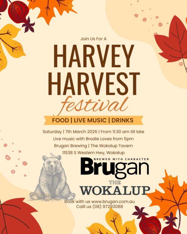 Soak in the Harvey Harvest Festival atmosphere at Brugan Brewery with live music, delicious local flavours, and great company.