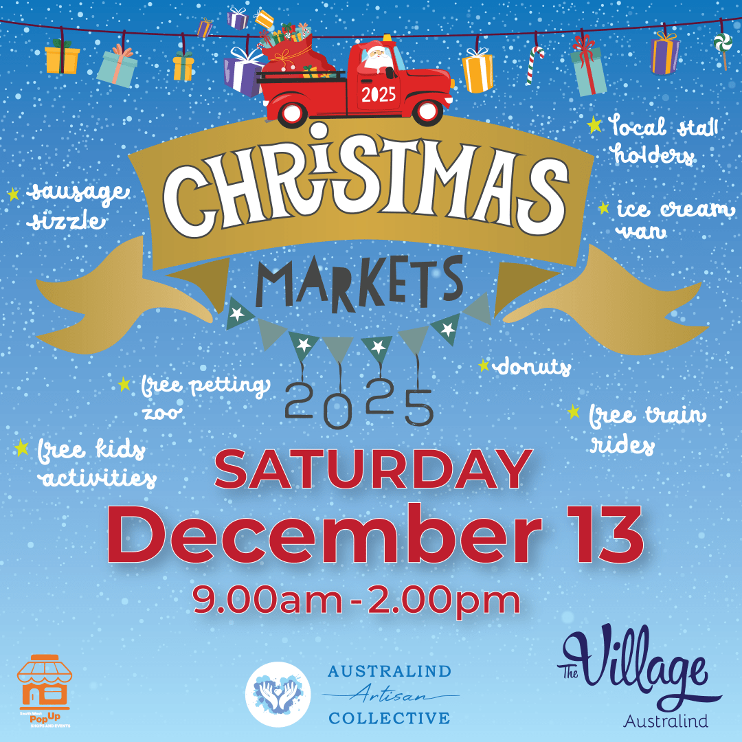 Join us for a festive family-friendly market featuring local stall holders, delicious food, free activities for kids, and special attractions including a petting zoo and free train rides. Bring the whole family — entry is free.